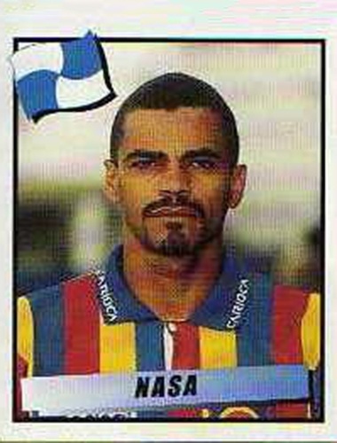 Nasa -Volante de marcação, Nasa participou da conquista da Libertadores pelo Vasco, além dos Brasileiros de 97 e 2000. Mas sua imagem ficou marcada negativamente após falha que resultou em gol do Real Madrid vitória na final do Mundial Interclubes, em 98, em jogo contra o Vasco. Reprodução/Álbuns Panini