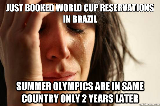 Acabei de fazer minhas reservas para a Copa do Mundo no Brasil. Os Jogos Olímpicos serão no mesmo país só dois anos depois