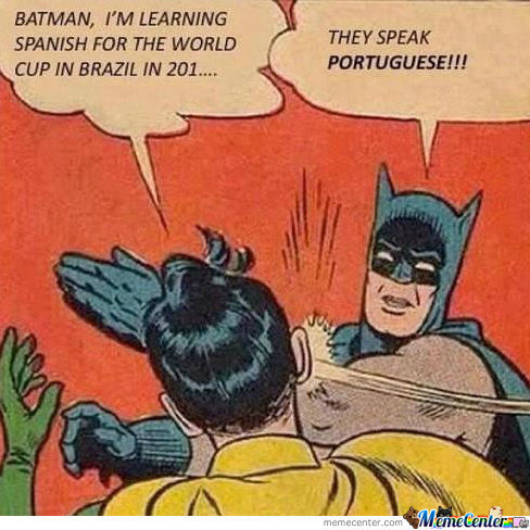 – Batman, estou aprendendo a falar espanhol para a Copa do Mundo no Brasil em 201… - Eles falam português!!!