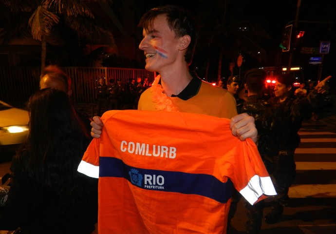 Pouco antes da delegação da Holanda chegar no hotel em que está hospedada no Rio de Janeiro, um holandês chamou a atenção ao chegar no local com uma camisa da Comlurb (Companhia Municipal de Limpeza) do Rio de Janeiro amarrada no pescoço. Há seis meses na cidade e com a proximidade da Copa do Mundo, ele viu o uniforme dos garis nas ruas e resolveu usá-lo na abertura do Mundial. Porém, tentou comprar e não conseguiu.